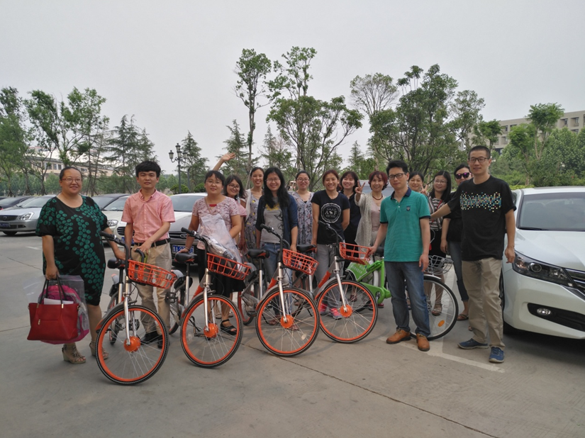 为了提倡绿色环保的出行方式,体验共享经济的新形态,5月22日,外语学院第一教研室工会小组的全体会员们齐聚在教科楼下进行共享单车骑行体验活动。