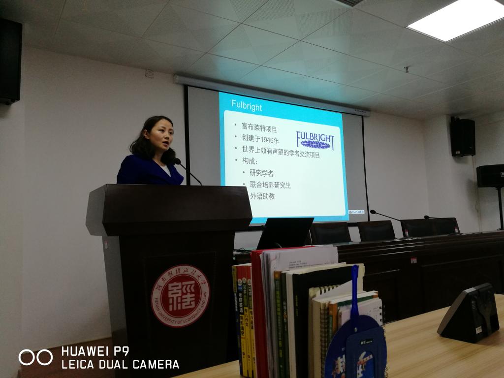姚洁老师从中美高等教育的差异出发,首先对富布莱特项目进行了简单的介绍,指出该项目并非如同传闻那样神秘,可触而不可及,可以根据自身条件,选择不同层次的项目申报,从而提高成功率。之后,她详细介绍了该项目下的“外语助教”项目,从教学和学习两个方面说明了作为富布莱特外语助教的身份的特殊性,以及相应的职责和义务。一方面,外语助教有教学任务,要承担一定量的美国校方本科生的汉语教学,包括课堂教学,课外辅导,成绩测试,文化活动策划与实施等。另一方面,外语助教同时作为美方高校的研究生,要选修一定量的课程,成绩考核合格,达到学分方被认证通过项目审核。最后,姚洁老师通过照片、视频及生活中的例子,在分享美国日常生活的点滴体会的同时,重点向老师们展示了她对美国高等教育的理解,尤其是在外语教学方面的巨大差异,也提出了对语言教学着眼点的疑问,表达了与同仁深层次交流的渴望。
