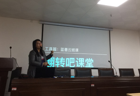 魏岚老师结合自己的反转课堂教学改革项目向外语学院老师们讲述了如何利用反转课堂调动学生的学习兴趣,上好分散考试性质的专业选修课,她还和大家分享了如何使用“蓝墨云班课”进行课堂教学和课下生生互动及师生互动,最后还特别根据外语学院的要求给大家讲了如何利用手机进行学生人数较多的大班考勤。武傑斌老师给大家简介了“超星学习通”提供的丰富教学资源,并现场演示了如何使用“超星学习通”进行现代化的课堂教学。外语学院很多老师对这些现代化教学手段很感兴趣,魏岚老师,超星公司的董文亮和武傑斌老师还给大家留下联系方式,表示愿意回答老师们的在教学中遇到的各种问题,帮助老师提升教学技能和信息化教学水平。