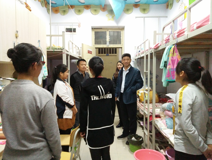 下午6时30分,岳书记和丁书记来到17级学生宿舍,与新生进行亲切交流。岳书记从学习、生活、安全等方面嘱咐大家要把握好大学时光,珍惜韶华,既要丰富大学生活,又要学好专业知识,对自己的未来应该有正确的规划。在走访的过程中,岳书记、丁书记认真聆听新生的疑惑并详细解答,大家生活、学习中遇到的困难学生干部也做了详细记录。
