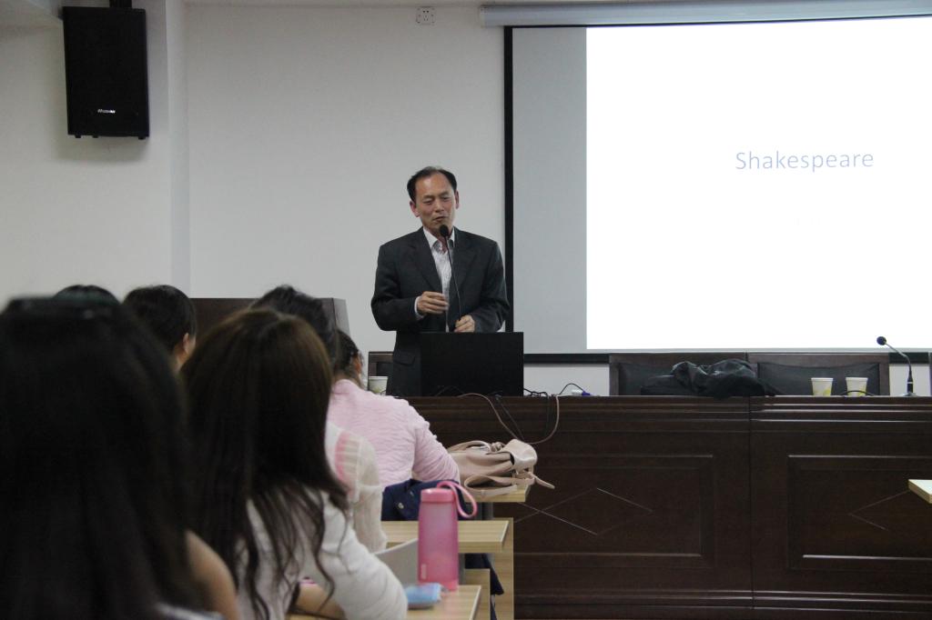 2016年5月12日晚,应外国语学院邀请河南大学外语学院院长高继海教授来到我院,作了题为“莎士比亚历史剧中人物的真实性”的学术讲座,外语学院相关专业师生共百余人聆听了此次讲座。