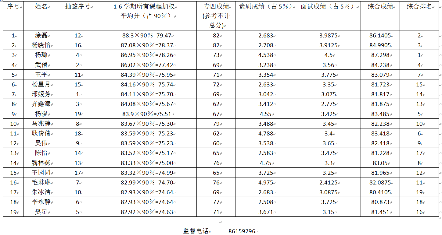 外语学院2018届申请推免学生成绩
