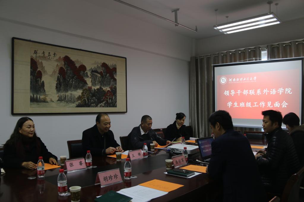 12月23日,外语学院在教科楼、教学一号楼召开了领导干部联系学生班级工作见面会。